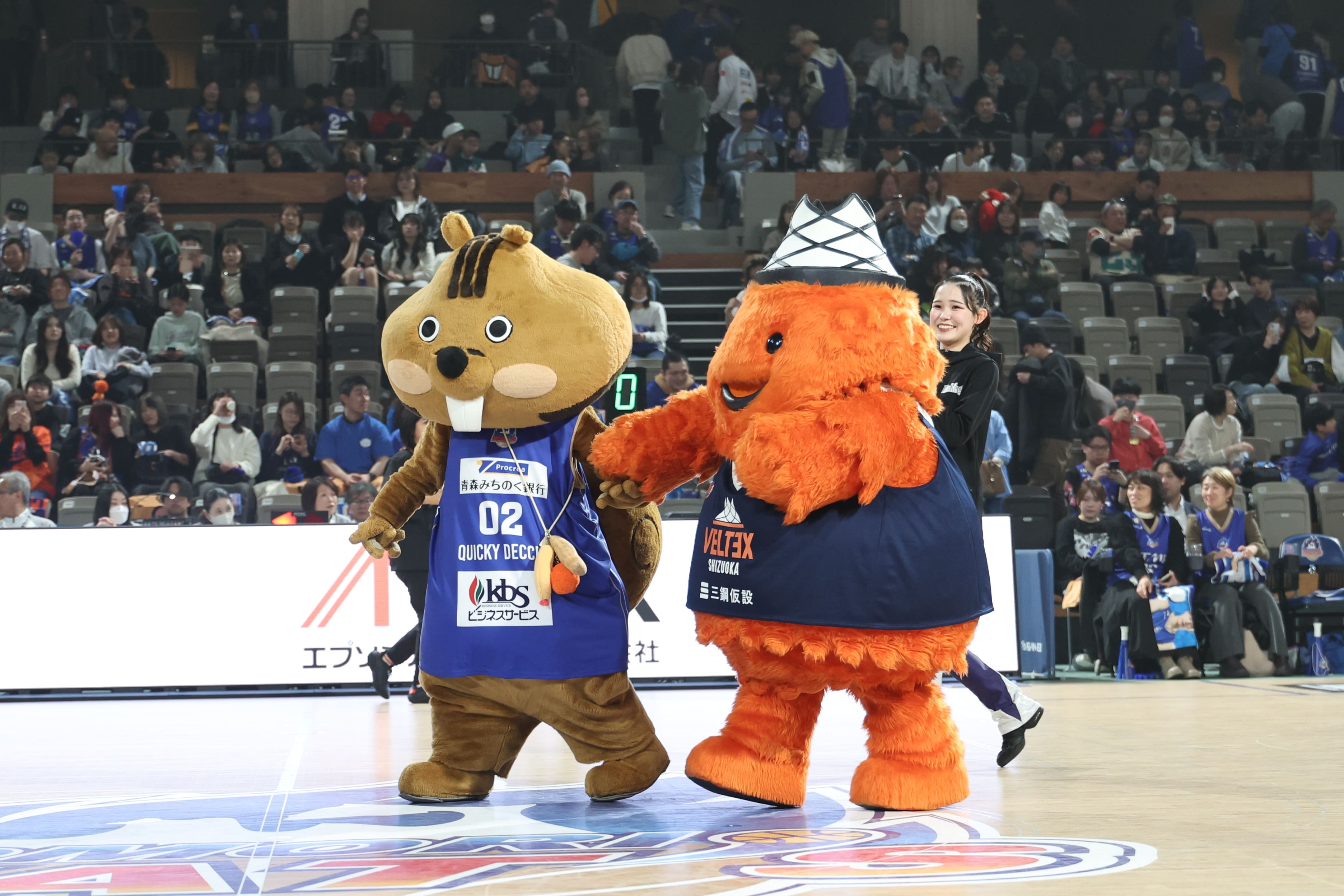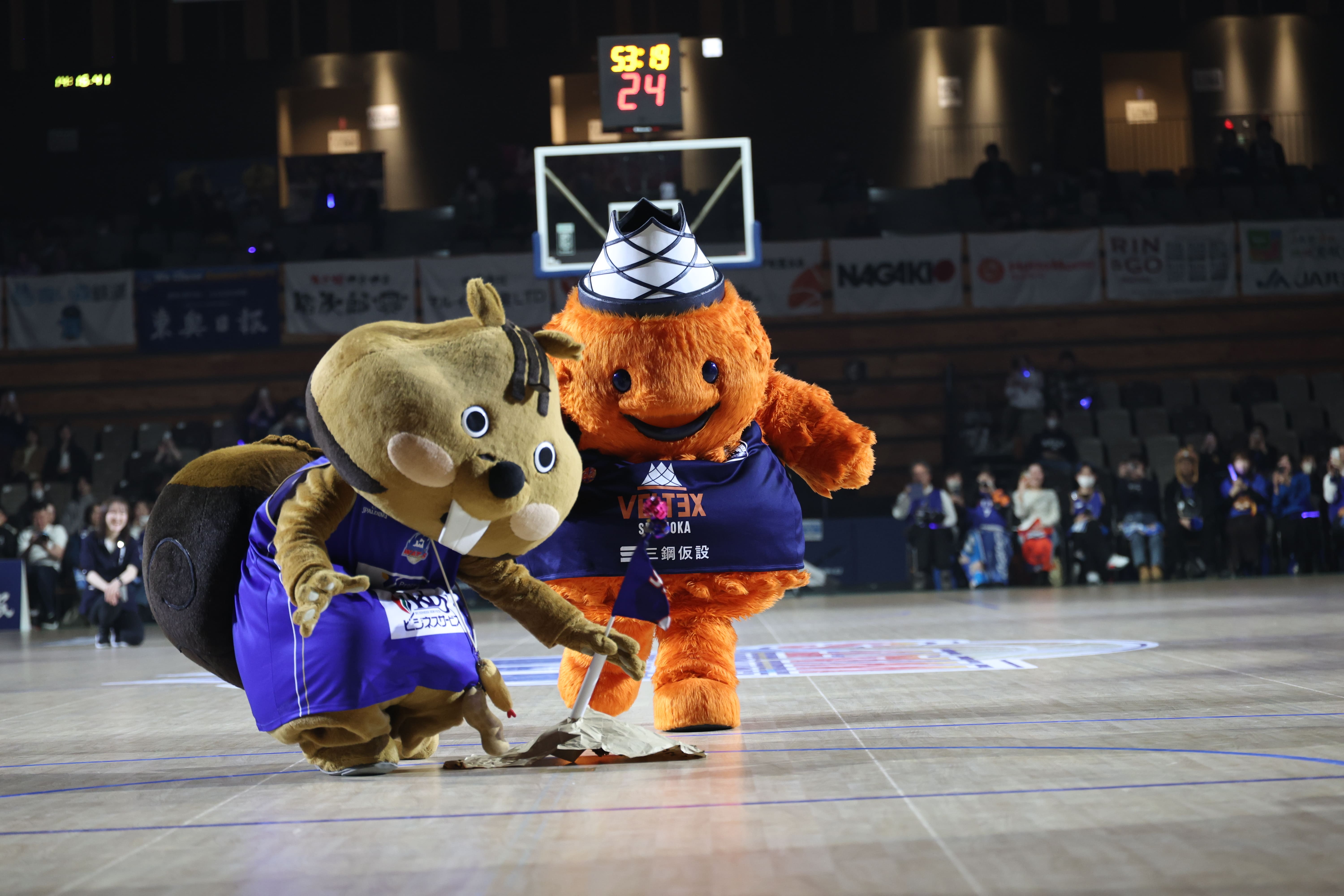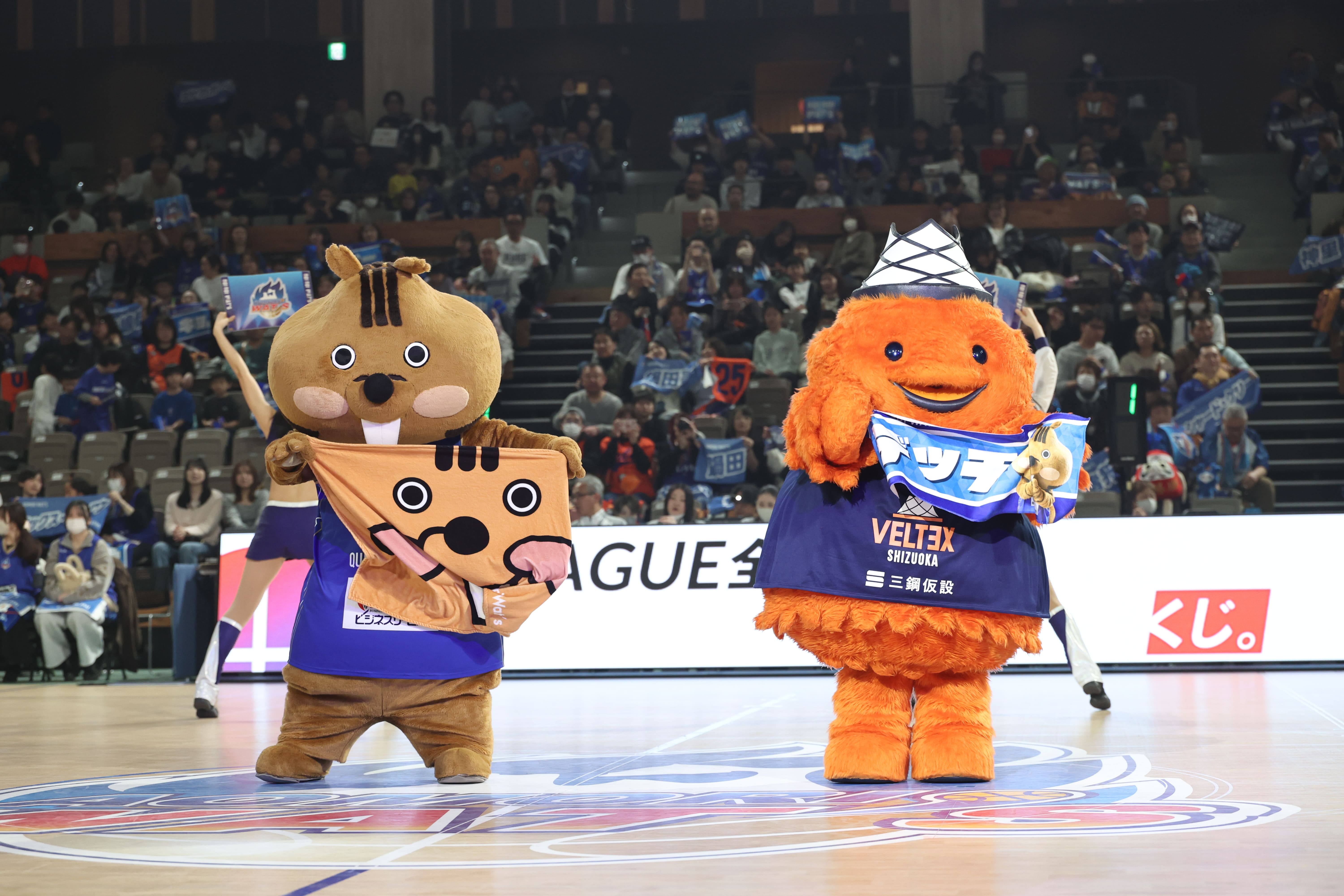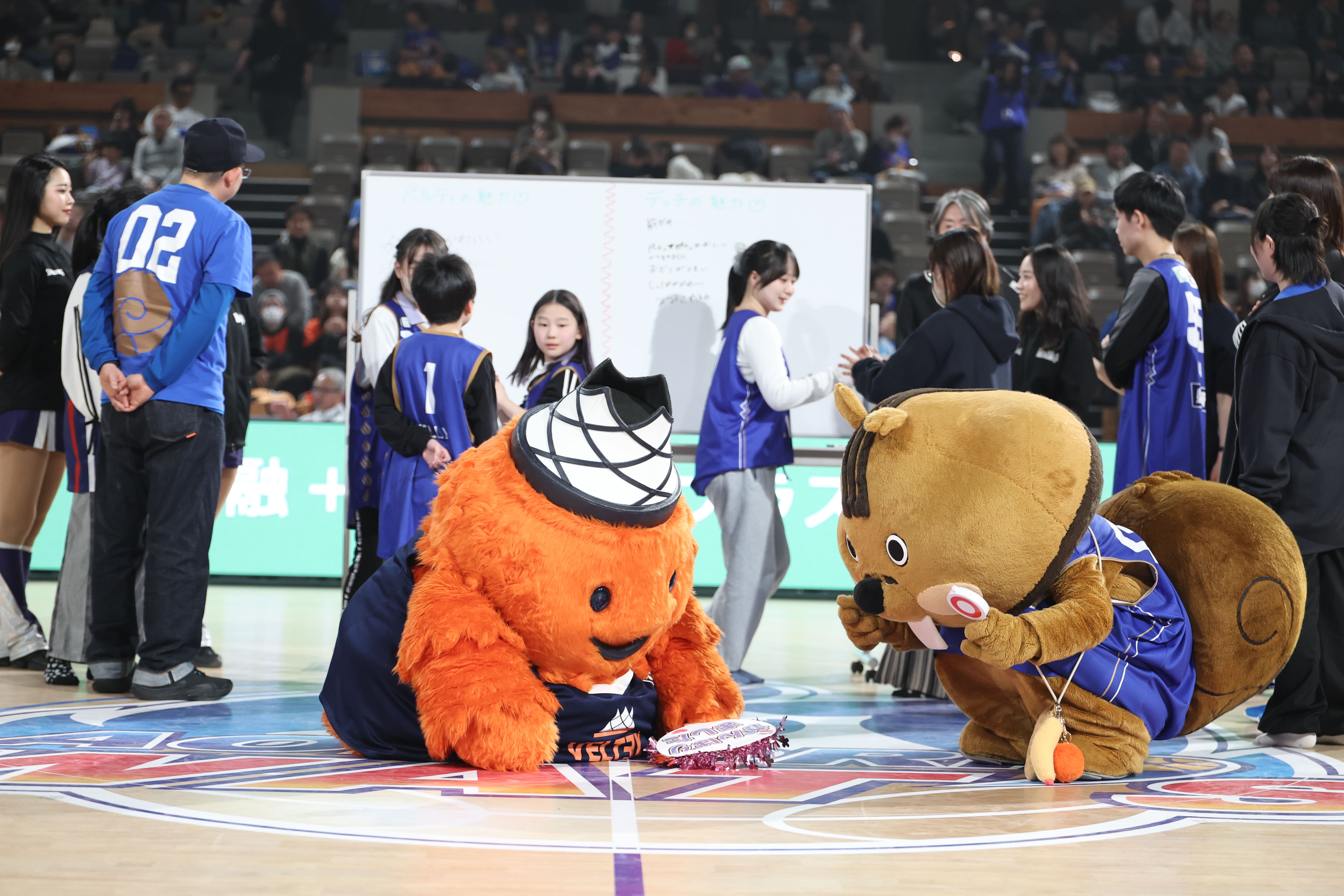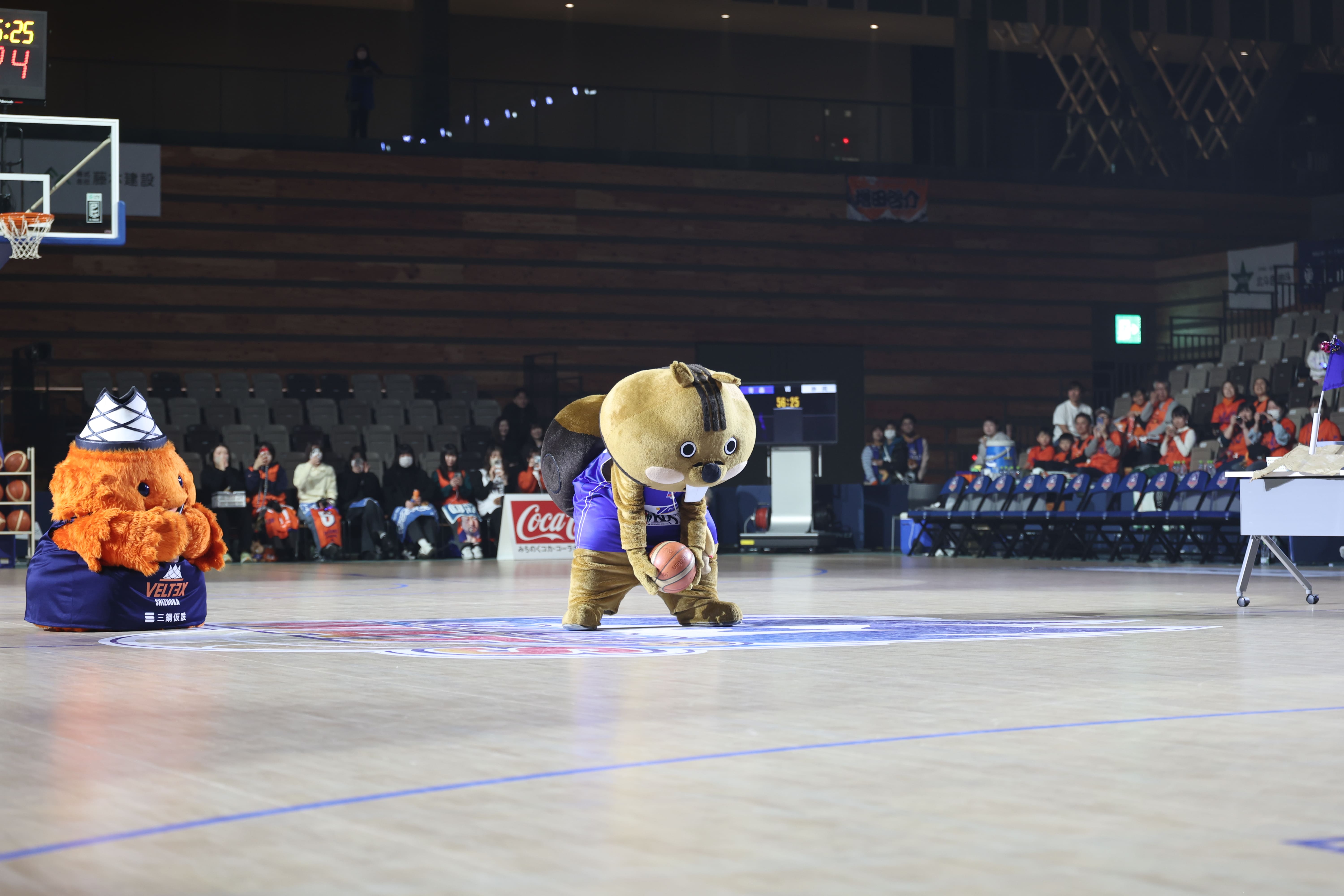 アウェーチームの静岡ベルテックスから公式マスコットのベルティが遠足でご来場