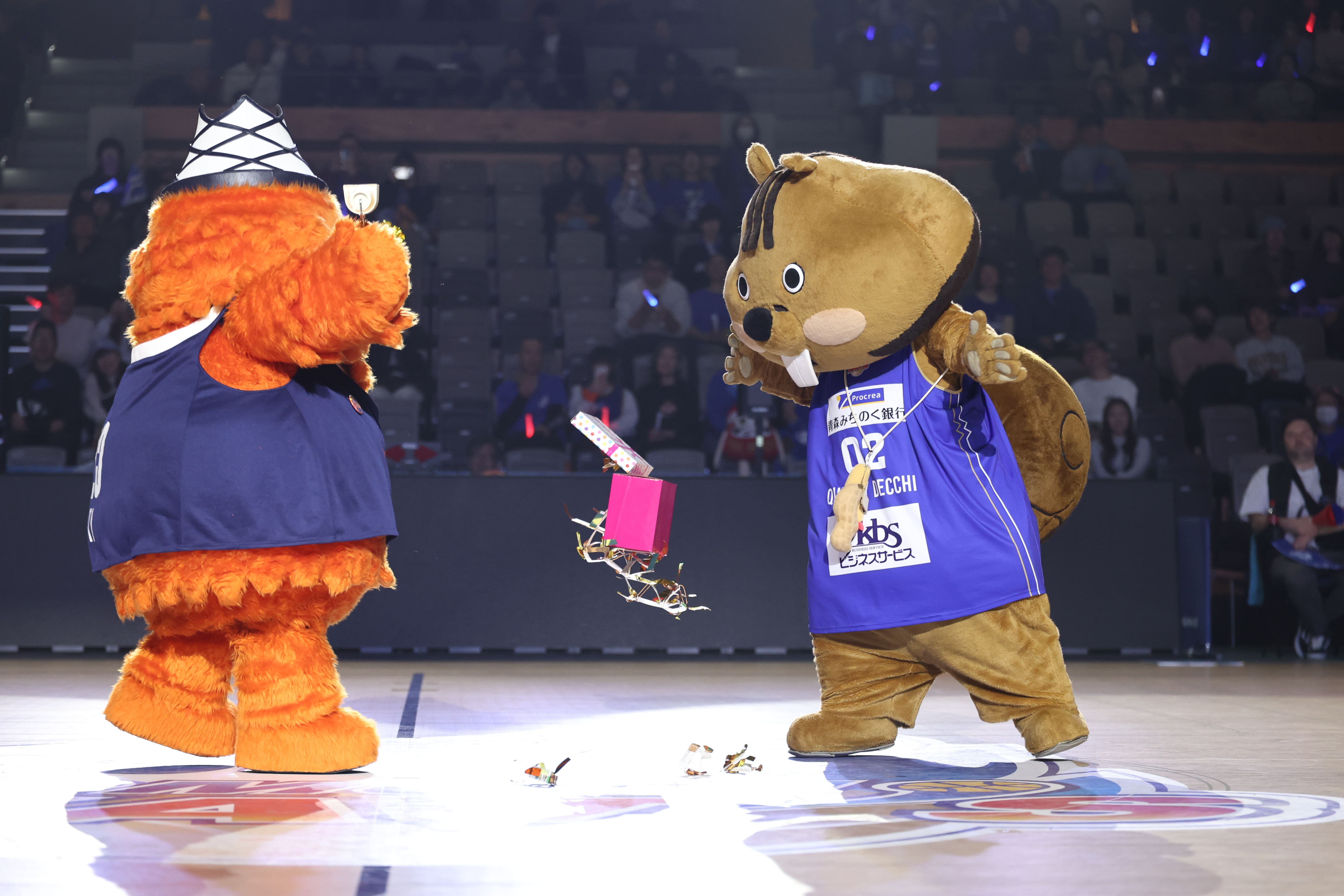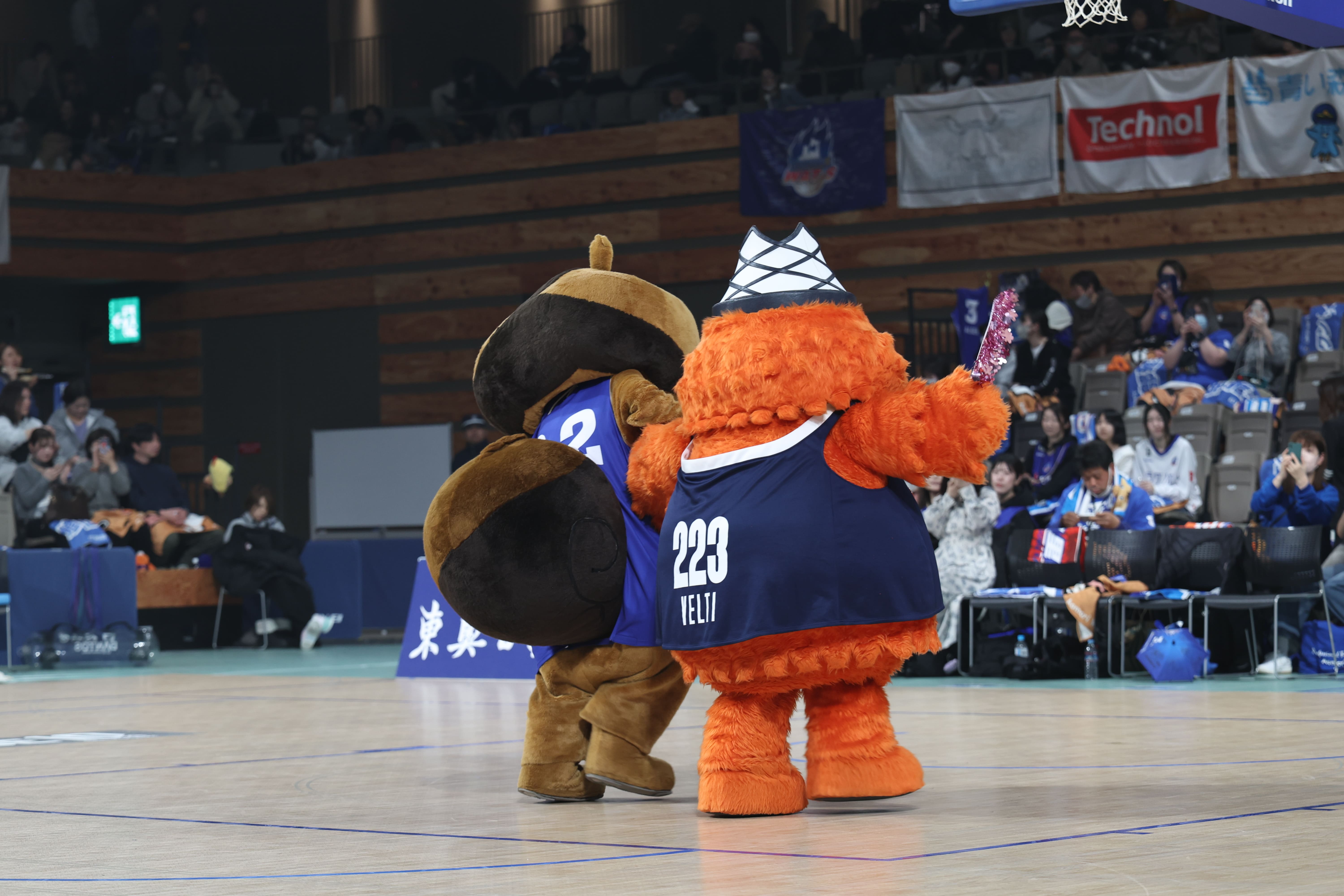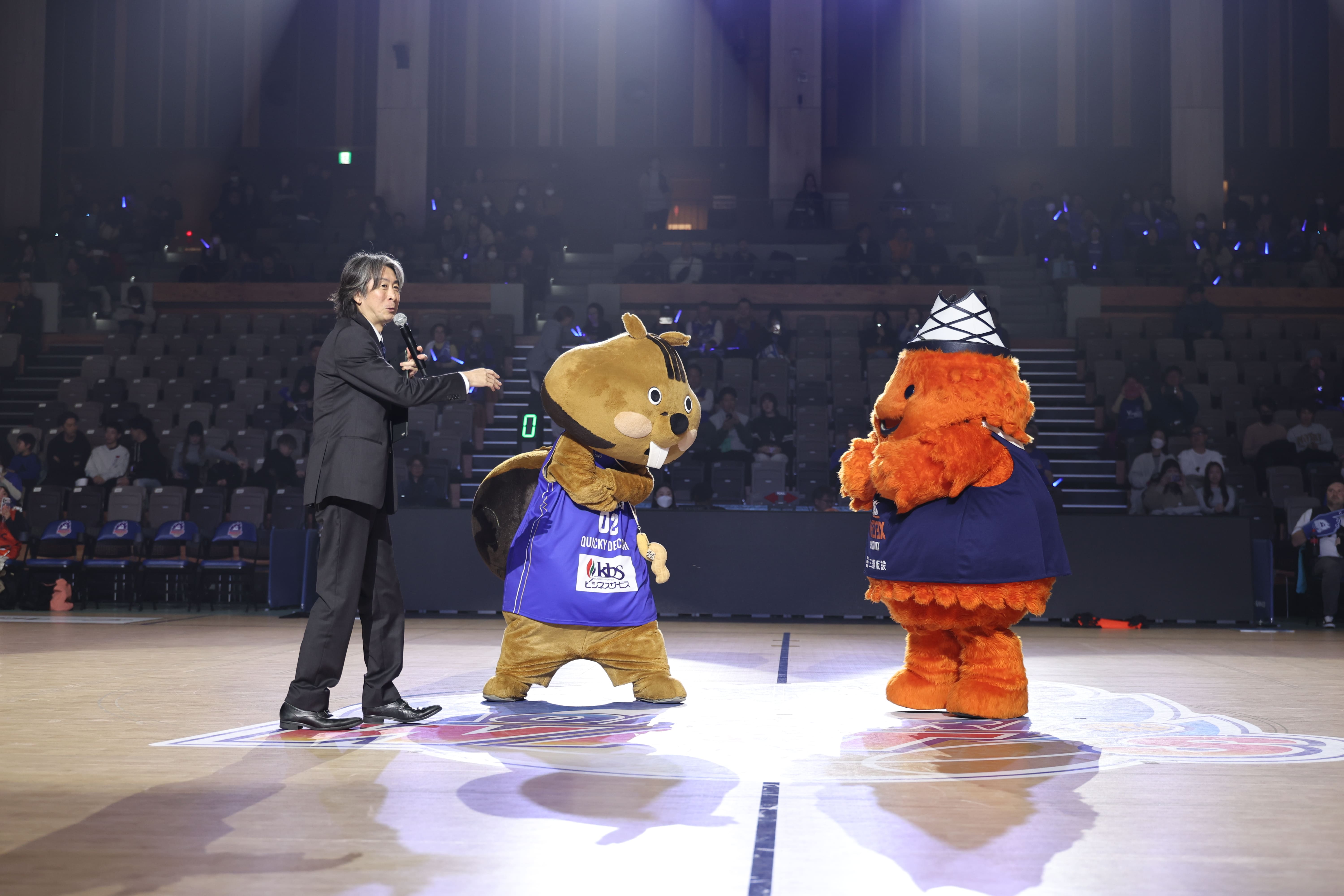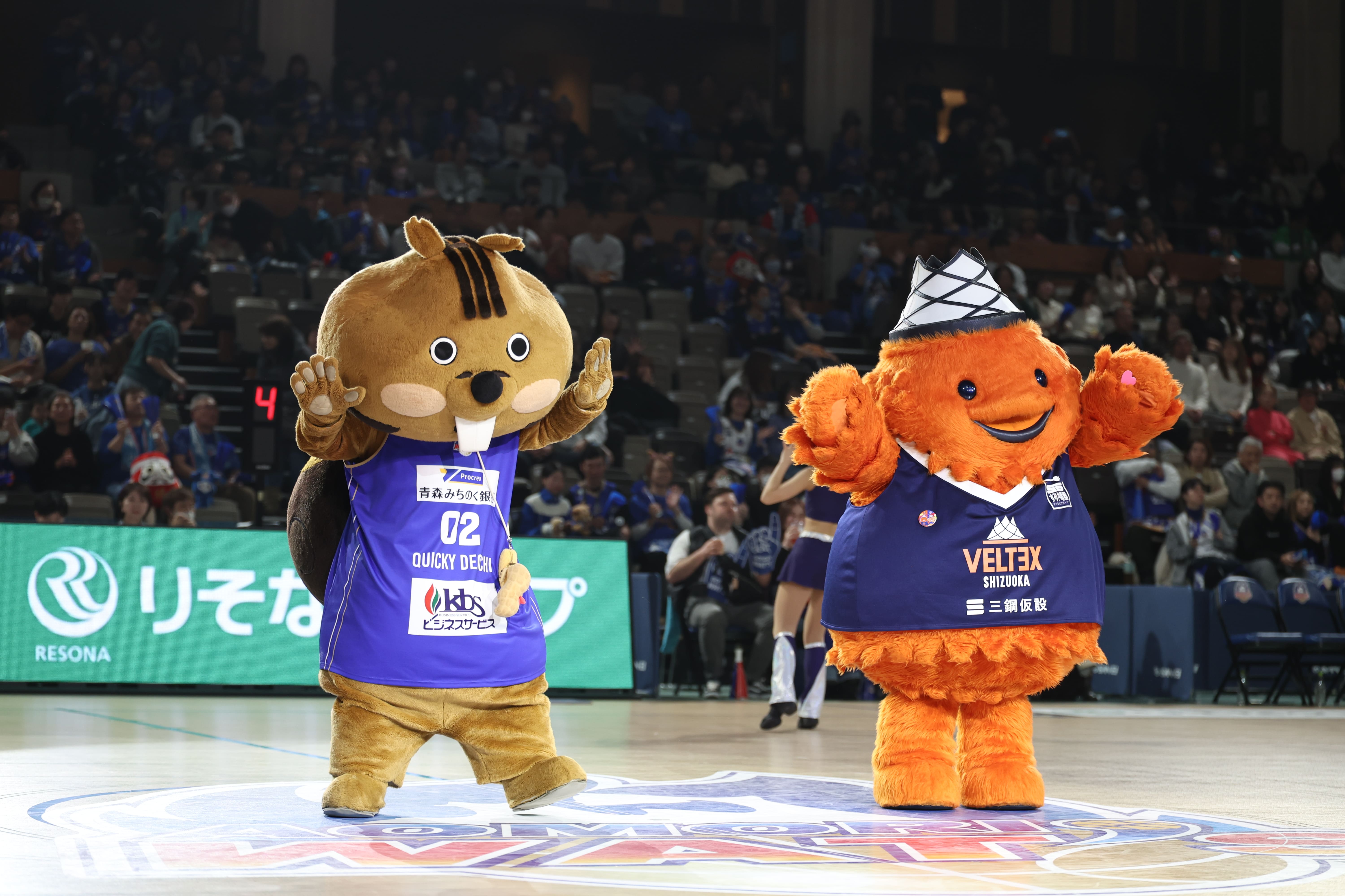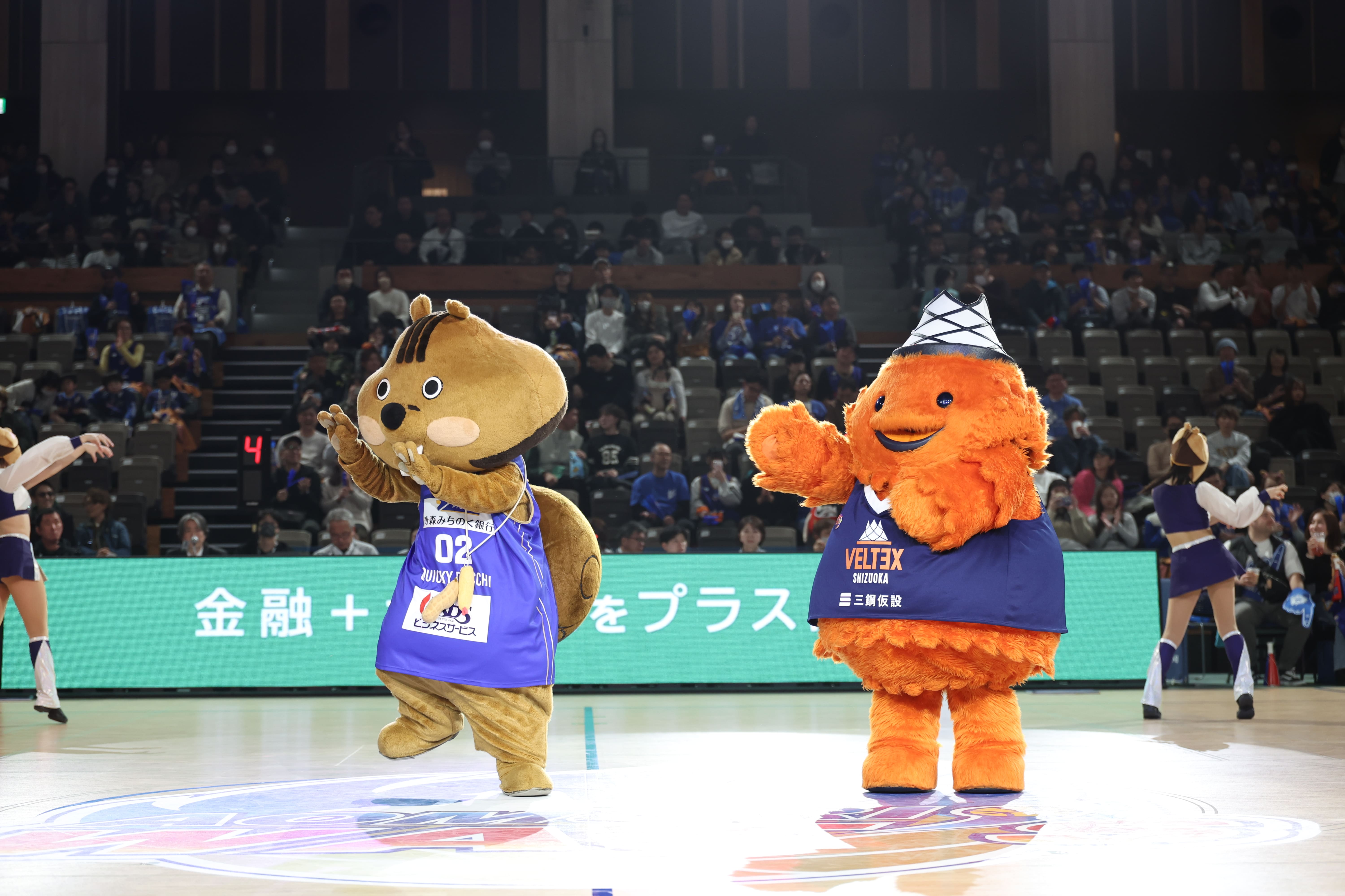 アウェーチームの静岡ベルテックスから公式マスコットのベルティが遠足でご来場