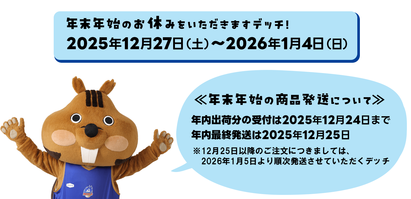 年内出荷分の受付は2025年12月24日までとさせていただきます。